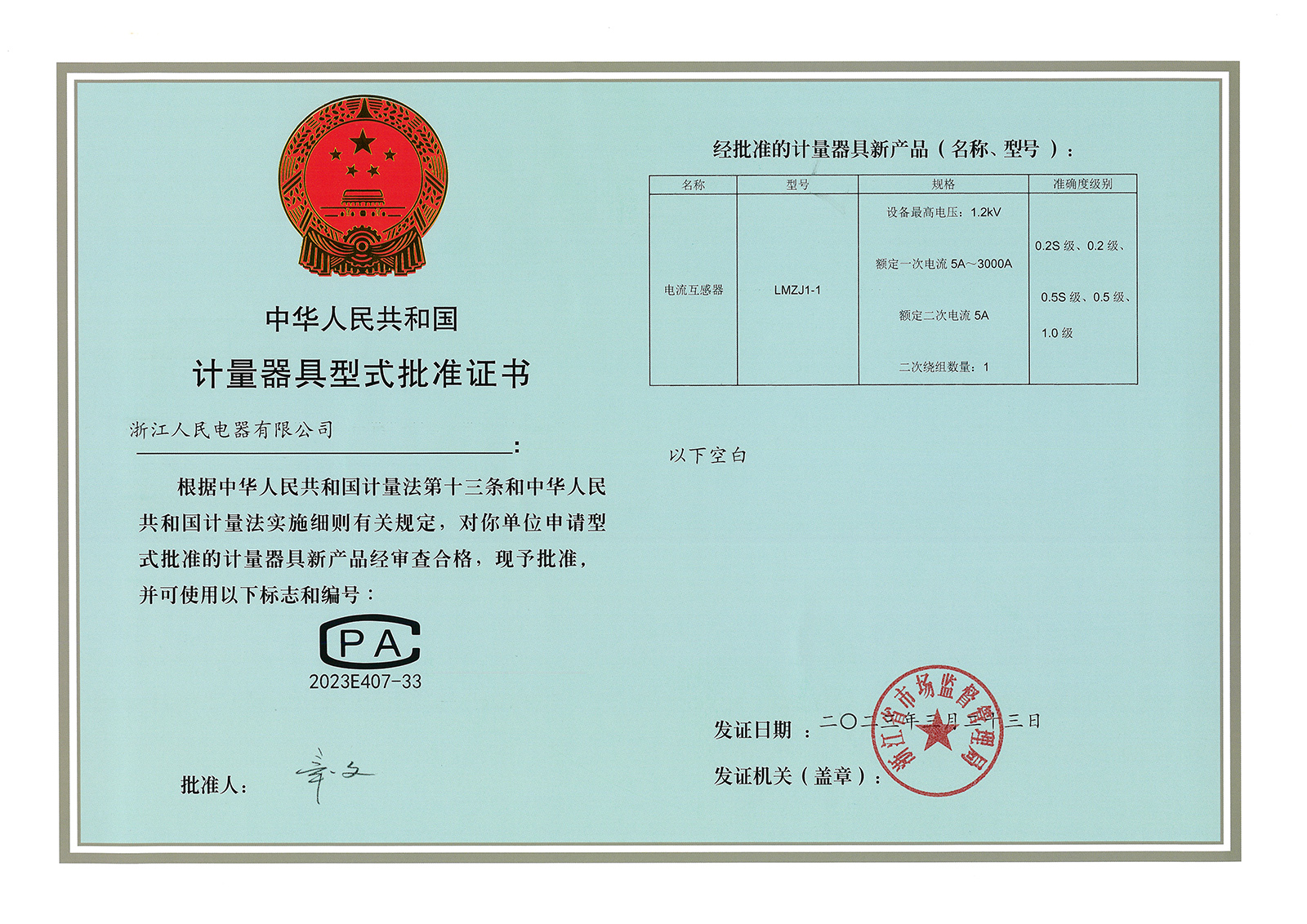 计量器具型式批准证书:LMZJ1-1系列电流互感器(点击下载)