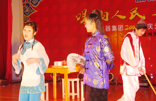 晚会在轻松愉快的音乐中拉开了序幕。主持人黄兆超、林乐丹分别介绍了各位领导和嘉宾。莅临现场的有柳市镇总工会主席绍春微、长虹村党支部副书记郑银余、温州大学瓯江学院副院长吴一琦以及人民电器集团监事长包巨文、进出口公司总经理叶向宇、仪器仪表公司董事长郑纬宇等有关部门领导。